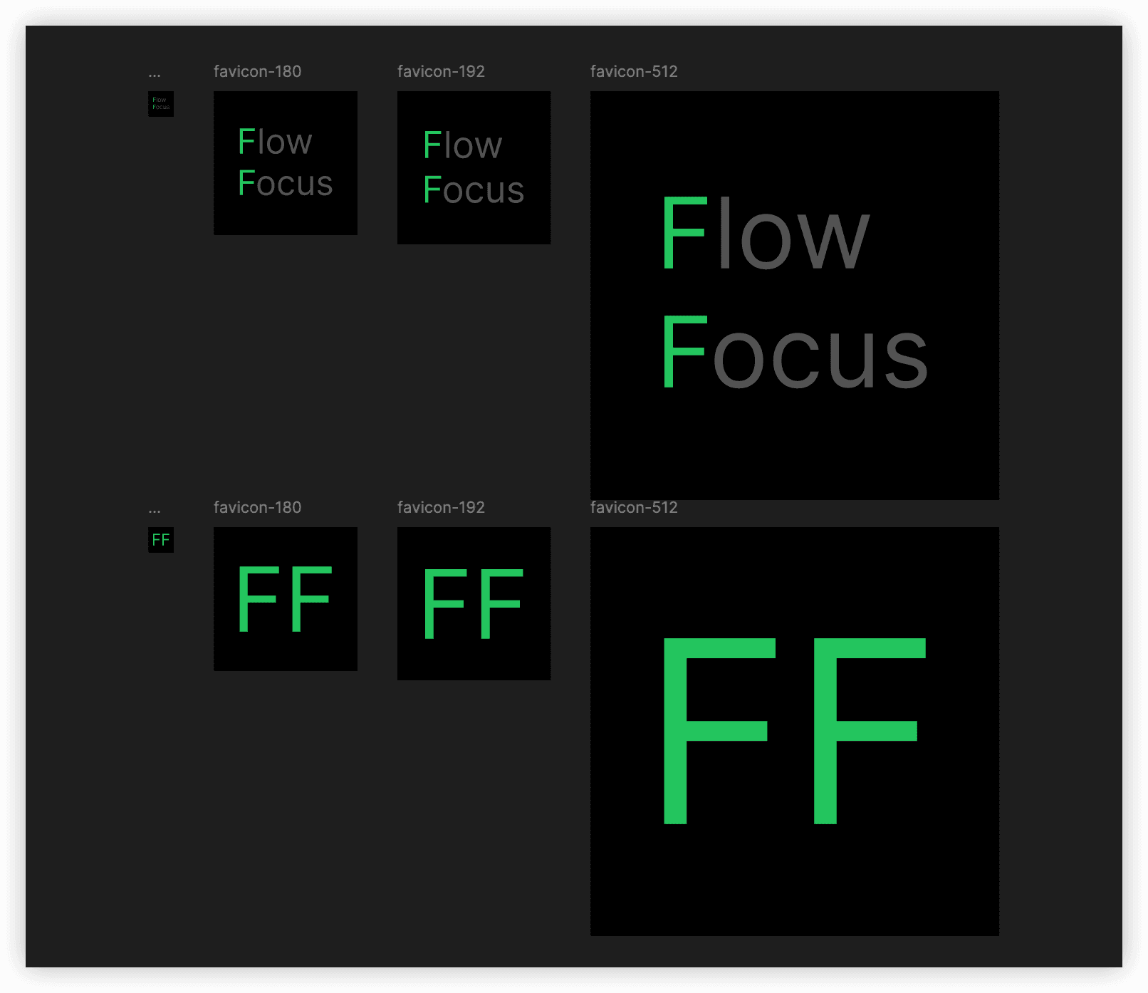 为了让网站看起来更专业,我还自己用 Figma 设计了一个 favicon。一开始的想法就是和网站标题一样的设计,两行文字,首字母突出颜色,但是这个图标在浏览器里太小了,根本看不清文字。索性就改成了FF,简单直接。