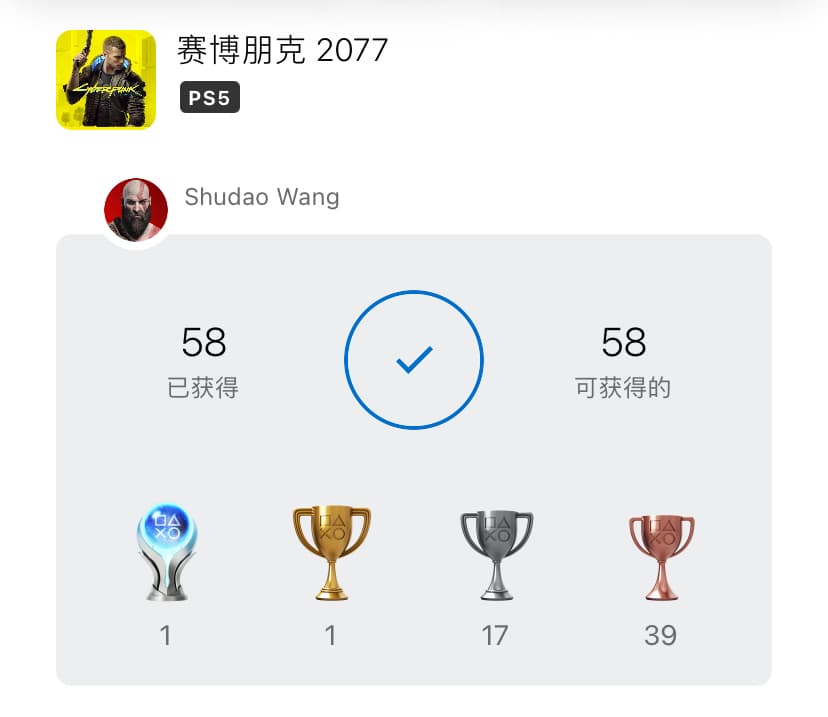 - 运动完,在 PS5 上玩一小时赛博朋克 2077。
