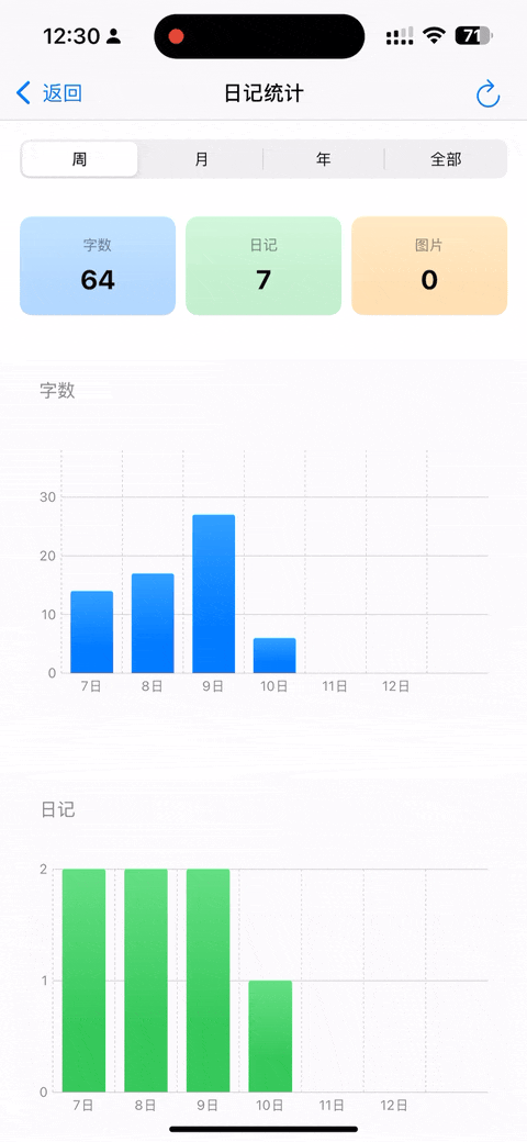 通过这个版本,我学会了 Swift Charts 的基本用法,以后就可以应用到极简时钟和 Nut Goals 的统计功能里了。