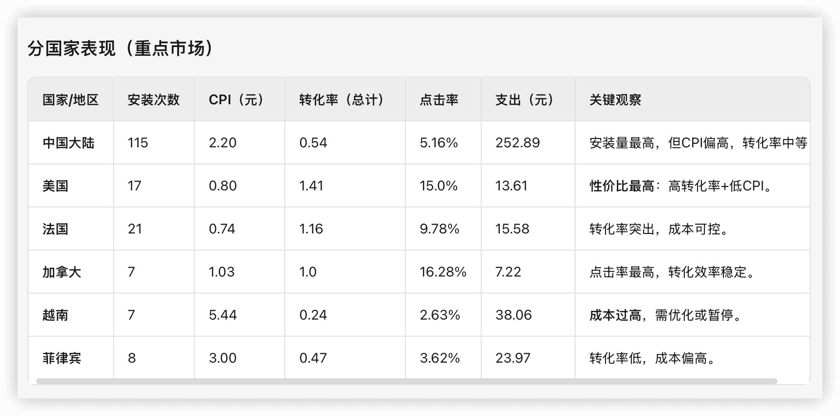 投放了两周了,第二周我去掉了中国大陆,就只投放第一周里展示量和下载量比较高的几个其他国家,但是现在来看无论是下载量还是单次点击付费都不如国内的数据,所以准备下周只投大陆再试试。