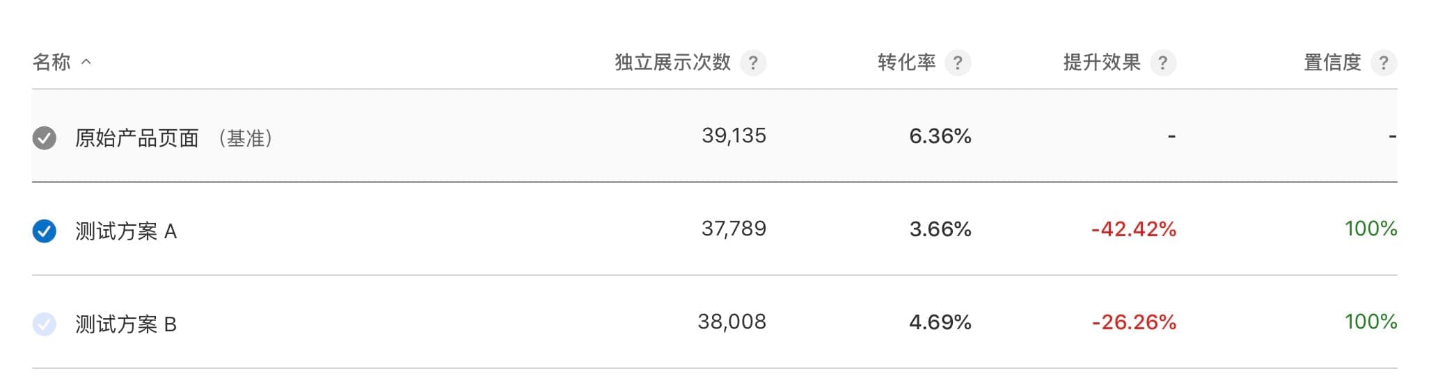 进行了一周极简时钟 iOS 的产品页面优化的测试,就是简单调整了一下预览视频的顺序,创建了两个对照的测试方案,结果其实第二天就很明显了,但是我拖了一星期才手动停止。