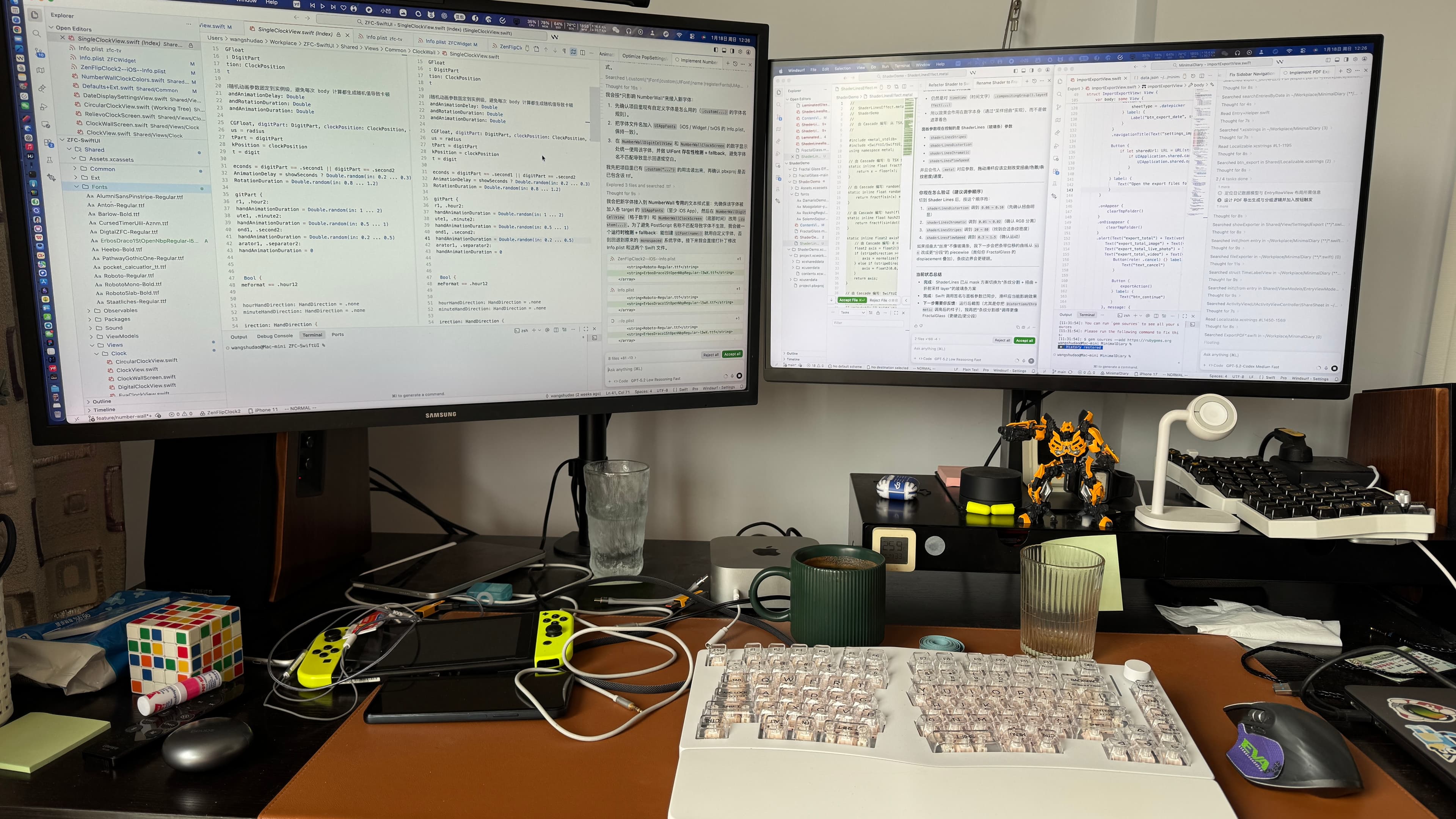 这周一开始的两天还不知道要干什么,就只好慢腾腾地推进极简日记的 iPad/Mac 版本。到了周中突然冒出来一些想法,于是尝试了一下同时靠 Windsurf 并行开发三个项目,先不说脑子能不能跟得上,眼睛就首先遭不住了,即使我有两个屏幕,但是 3 个 Windsurf + 3 个 Xcode + 3 个模拟器切换起来可要了命了。