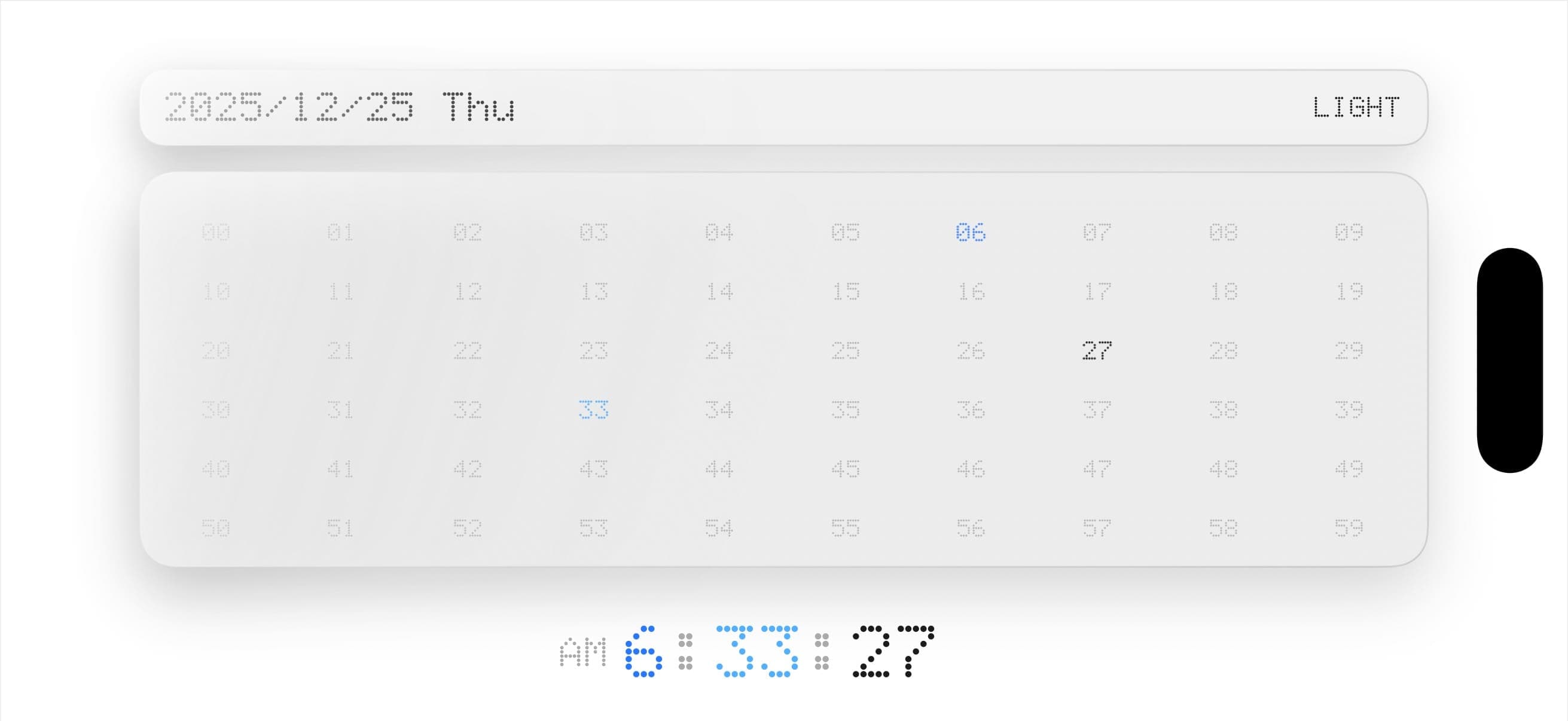- 时钟模式下右下角出现了大面积空白,为了平衡,我就加入了装饰用的点阵图
