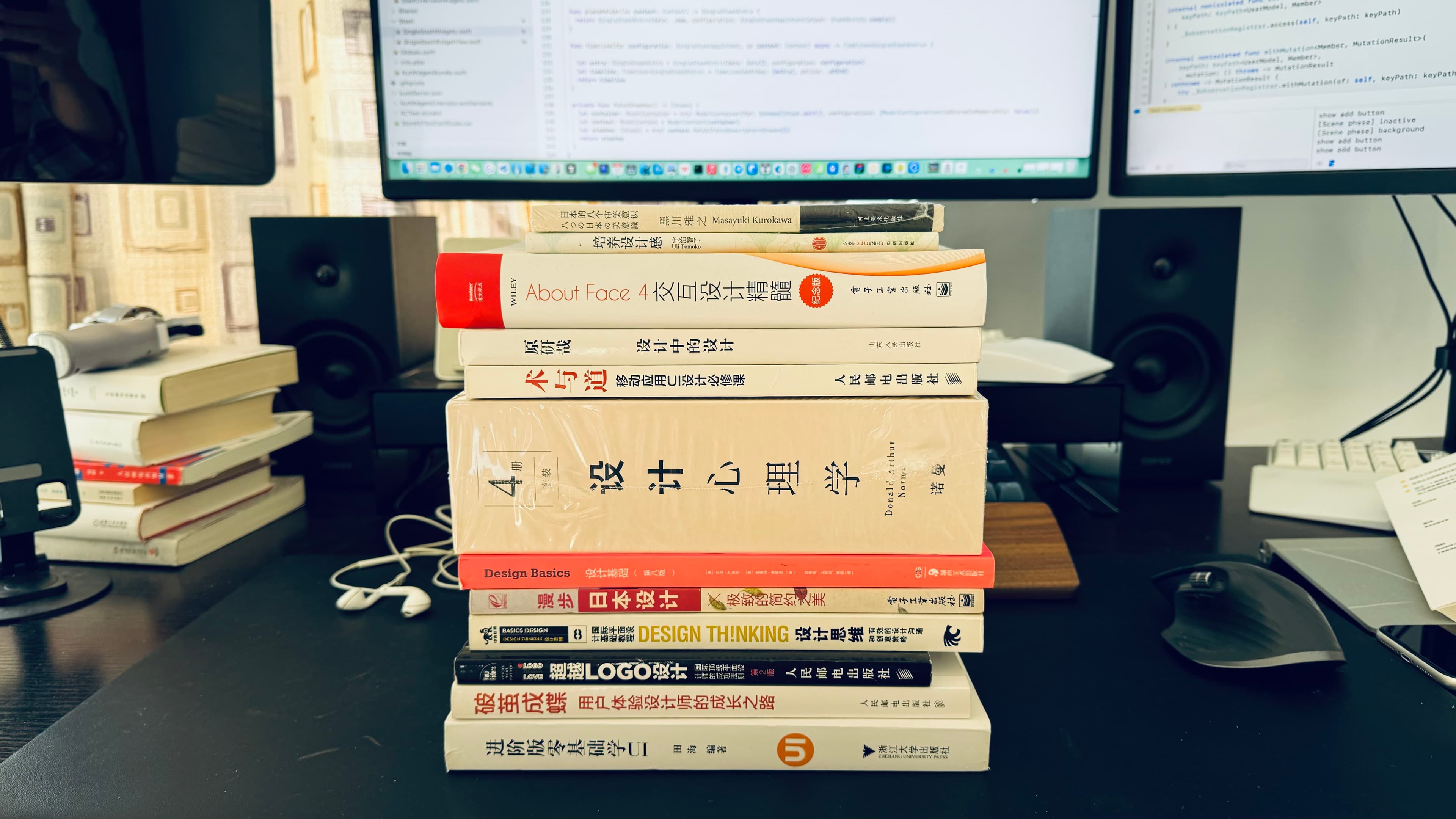 然后又假装要自学设计,把之前买的设计类书籍都掏出来,拍个照发个帖子,我的本意是吸引一些设计师,没想到留言的都是想要学习设计的人,还问我怎么能学会设计……我要是能学会的话我还找什么设计师!