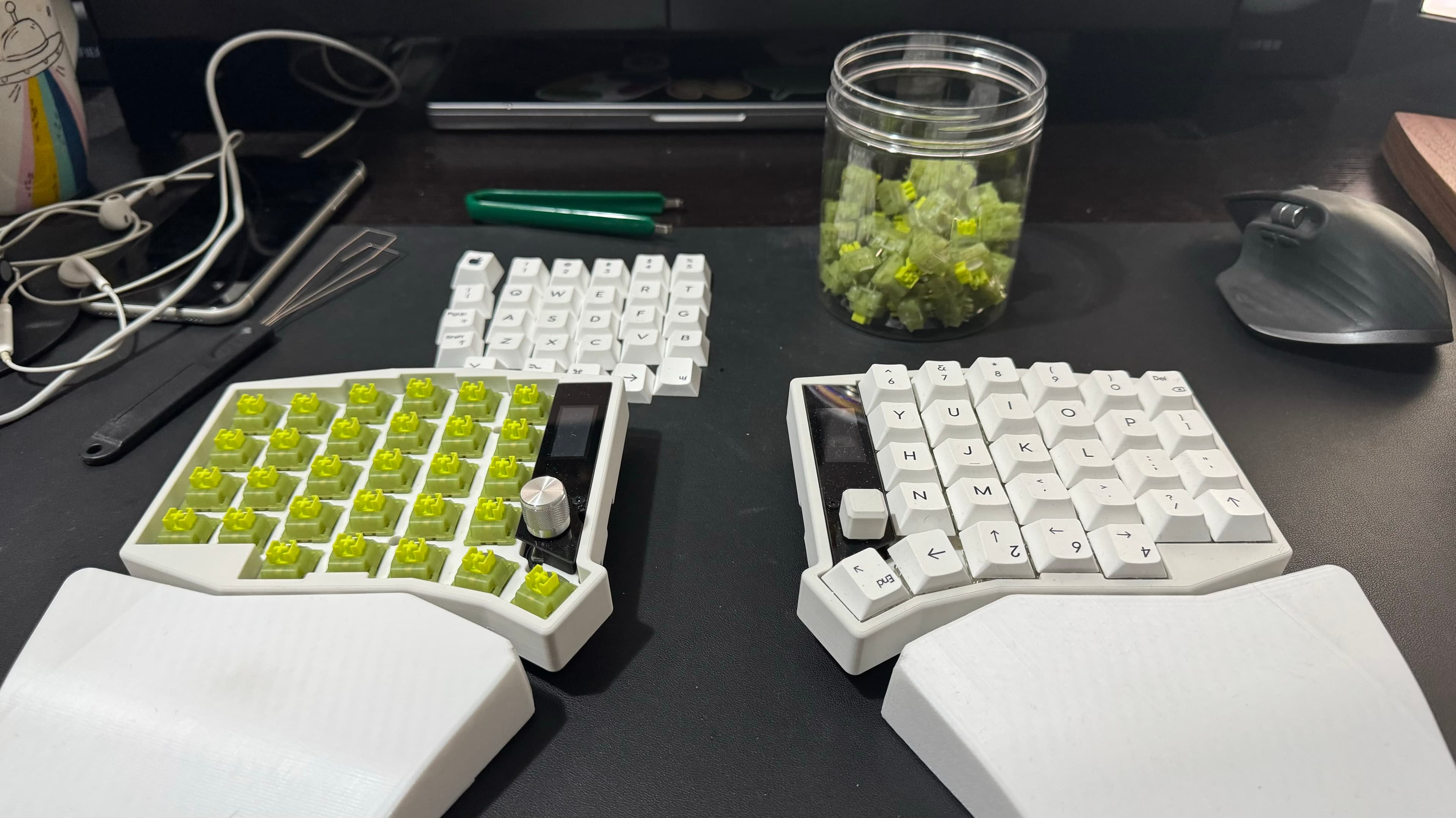 - 买了盒青柠轴,手感很不错,除了微微的段落感,竟然有一点点像静电容轴,比之前的香蕉轴好太多了