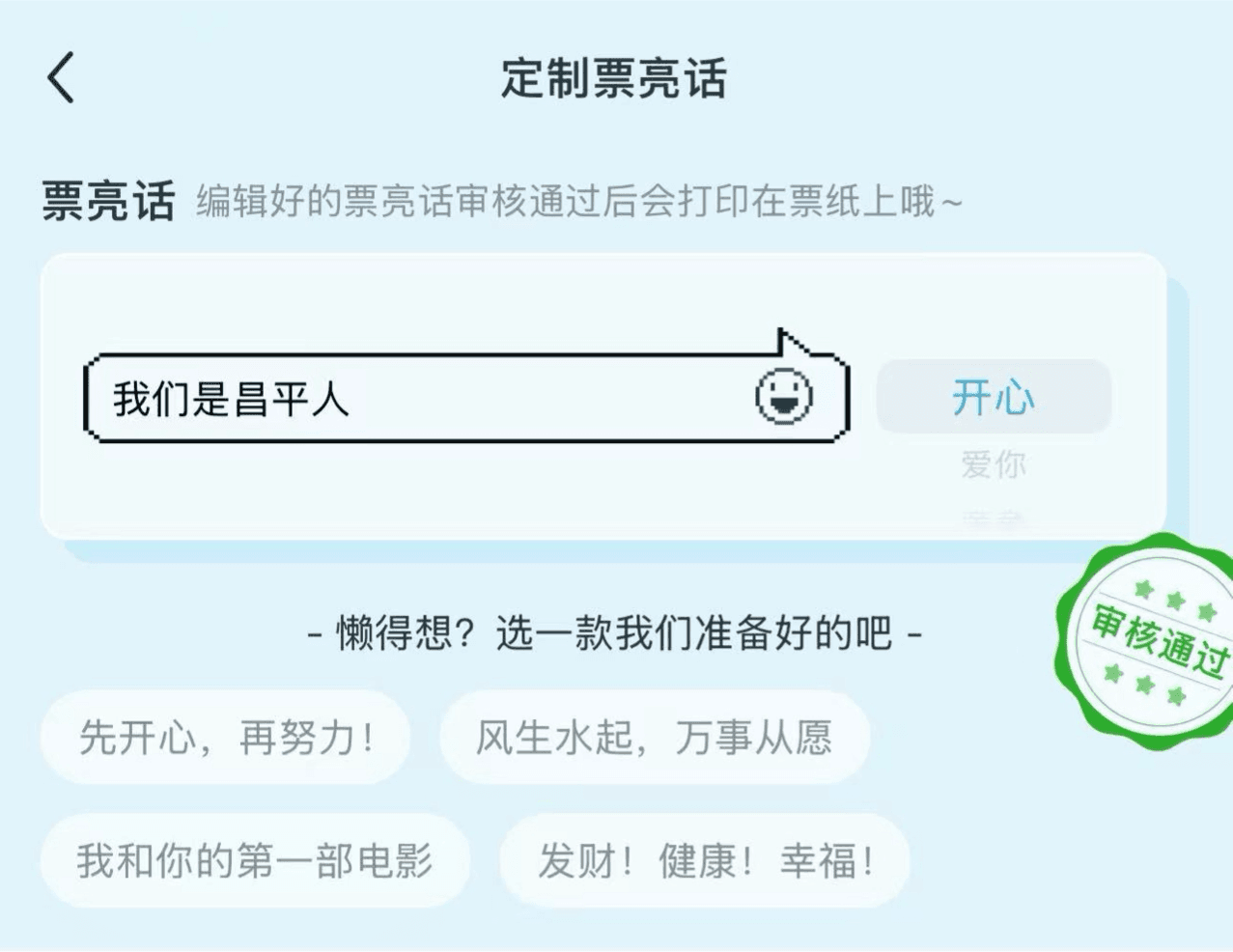 唯一的遗憾是,万达 App 上可以定制一句话打印在电影票上,我定制的是:我们是昌平人!结果我取票后发现并没有这一行字,淦!