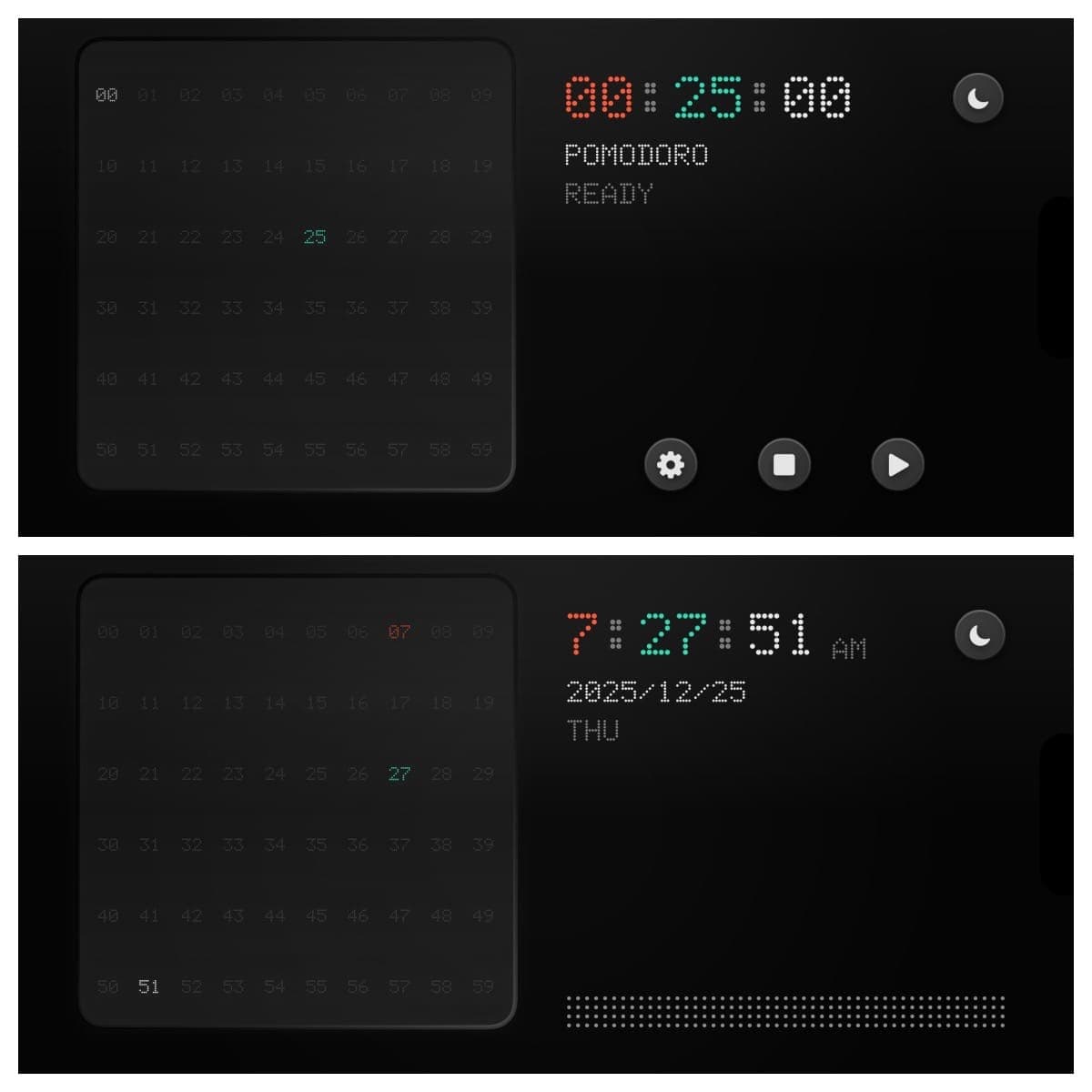 - 时钟模式下右下角出现了大面积空白,为了平衡,我就加入了装饰用的点阵图