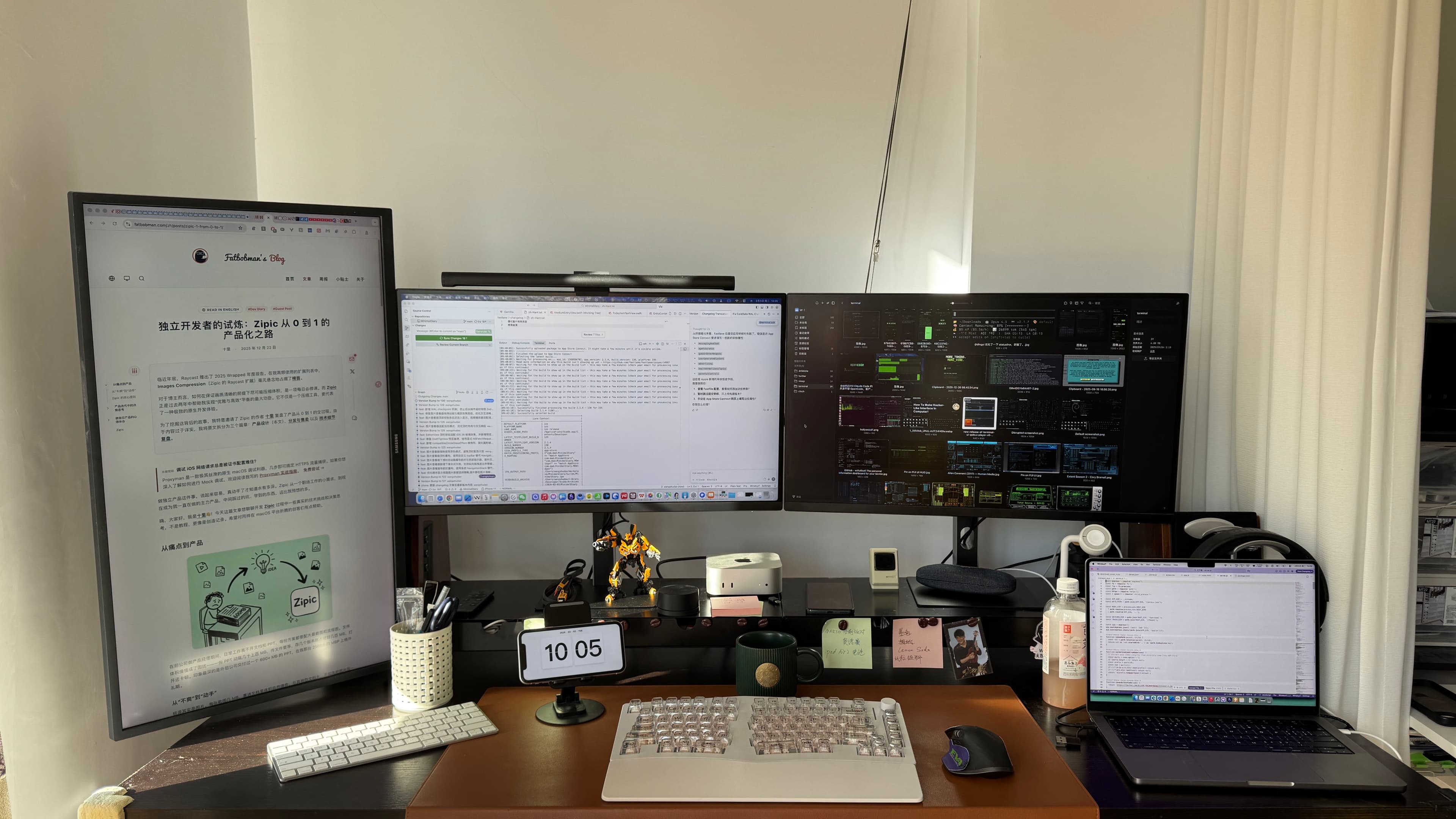又入手了一台红米 4K 显示器和之前同款的带抽屉的显示器增高架,至此我的桌面组合成了终极体,从此再也不用纠结显示器的横屏竖屏切换,也不用反复转动两台显示器调整角度了。